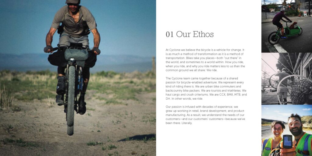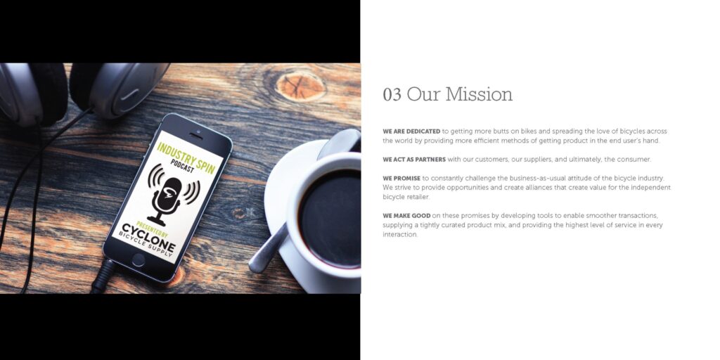 Led a brand refresh for Cyclone Bicycle Supply—a B2B distributor— which included developing an updated voice and style guide, new messaging, identity elements, and a modernized visual system across digital and print, including producing this brand book for select retailers.